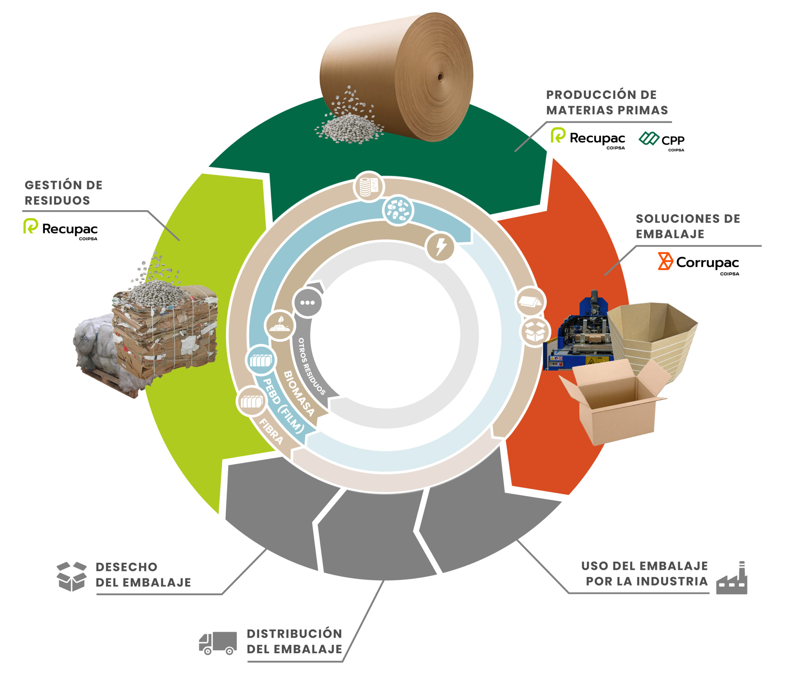 En Coipsa basamos nuestro modelo de negocio en el poder transformador que tiene la economía circular, por lo que integramos el desarrollo de soluciones de embalaje, la producción de materias primas recicladas y la gestión de residuos.